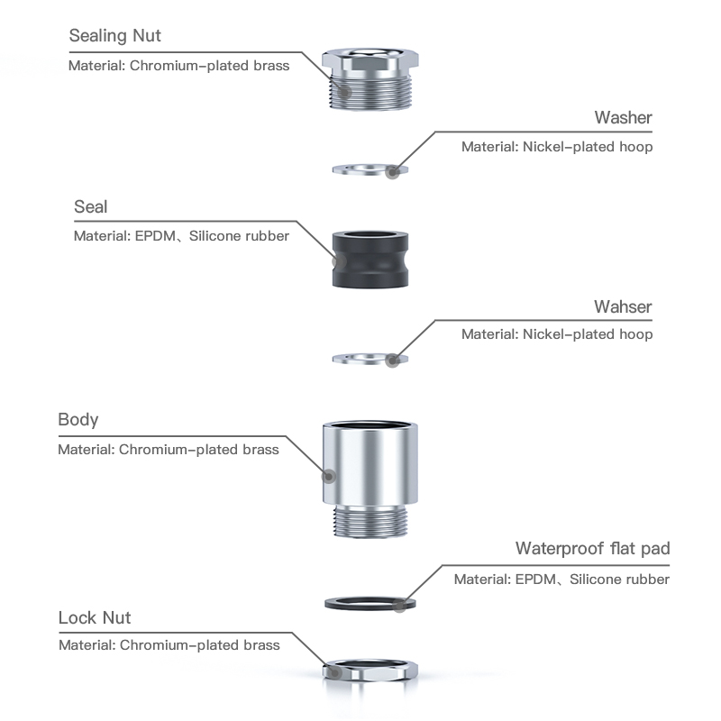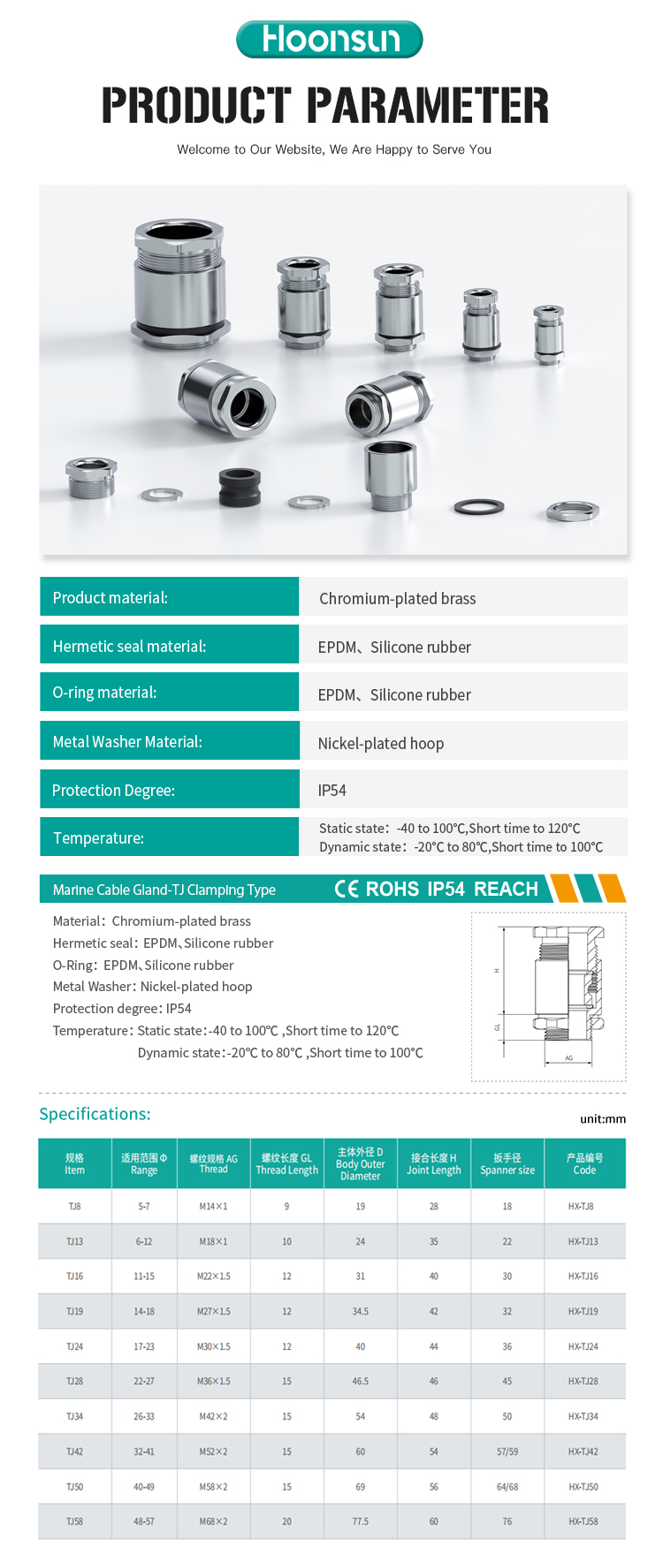 Hoonsun IP54 Chromium-plated brass Marine Cable Gland -TJ Clamping Type