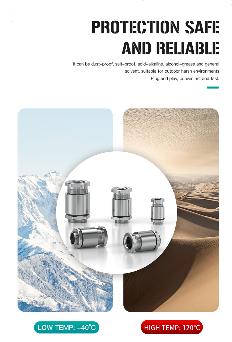 Compatible with PG, NPT, and Metric threads for global use. Designed for quick assembly and replacement, reducing maintenance time.