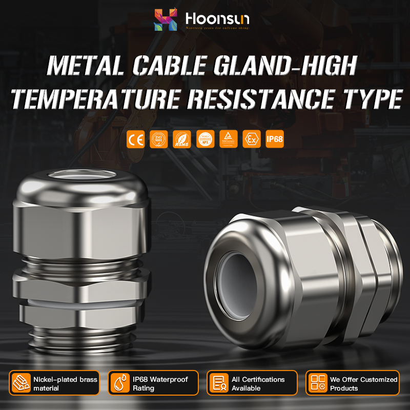 The High-Temperature Resistant Metal Cable Gland from Hoonsun Cable Gland is engineered to withstand extreme heat, humidity, and corrosive environments. Constructed from nickel-plated brass and sealed with high-grade silicone rubber, this cable gland delivers reliable performance in applications where elevated temperatures and mechanical stresses are present.