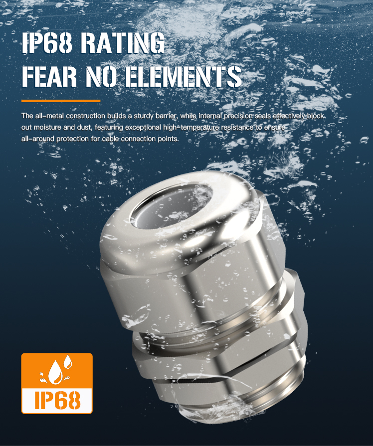 Built with nickel-plated brass and EPDM/silicone rubber seals, this IP68-rated metal waterproof connector guarantees cable durability in harsh conditions like sandstorms, snow, ice, and heavy rain.