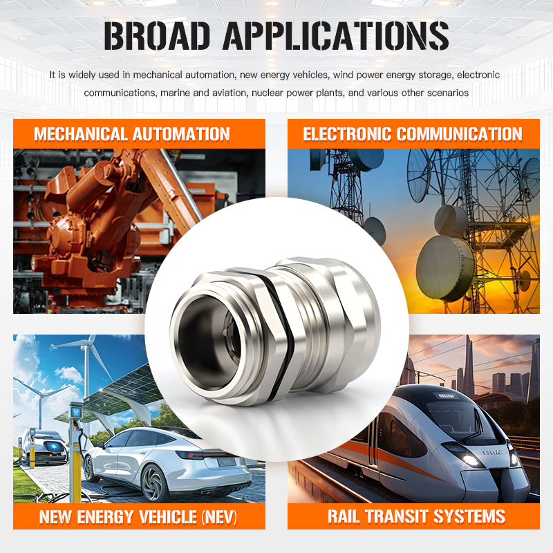 Equipped with an integrated 360° grounding structure, the gland securely clamps the cable’s braided shield, creating a continuous conductive path that eliminates electromagnetic interference (EMI) and radio frequency interference (RFI). This ensures stable signal transmission and enhanced system reliability.